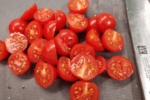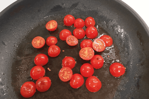 Heat oil in a pan. Add tomatoes. Sauté over medium heat for about 2-3 minutes.