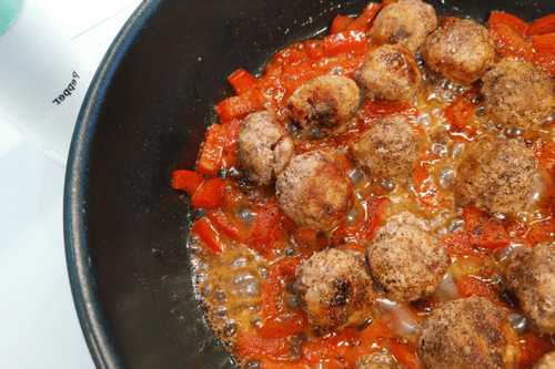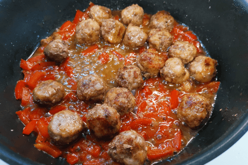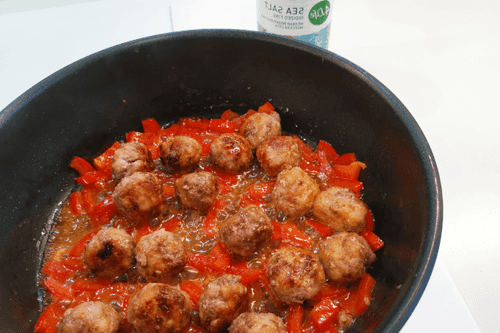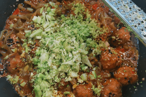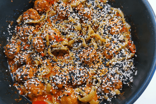 Wok with meatballs