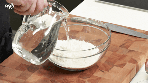 In a large bowl, mix flour, 6 grams of salt, and water.