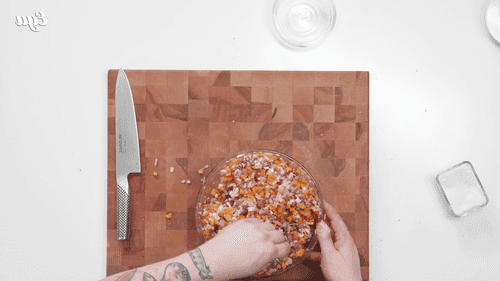 Meanwhile, clean and cut the pumpkin into small cubes.