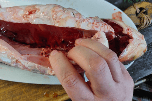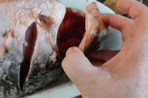 Remove the gills from the fish and rinse.