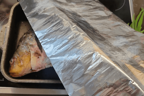 Cover the dish with fish tightly.