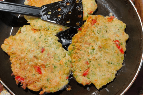 Large vegetable pancakes are tender, airy cakes filled with the rich flavors of cabbage, sweet pepper, and aromatic onion. This recipe originates from European kitchens where vegetable dishes have always resonated with gourmets. The combination of three types of cabbage adds freshness and a slight spiciness. Flour and eggs provide structure while baking soda makes the batter soft and airy. The golden crust that forms during frying adds a delicious crunch, while sour cream gives a creamy note. These pancakes are great as a standalone dish or as a side to meat or fish. Perfect for those who appreciate healthy and tasty food!