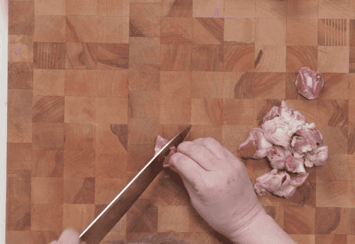 Cut the stomachs in half, trim off excess fat and parts stained with bile, which are green or yellow.