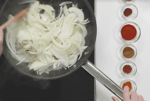 In a large skillet, heat vegetable oil and sauté the onion for 3-4 minutes until soft.