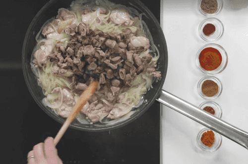 Add thigh pieces and fry until semi-cooked for about 4 minutes.