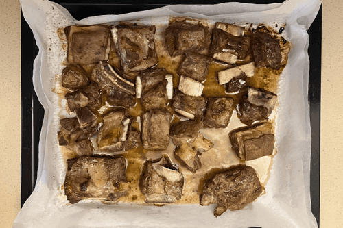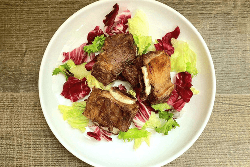 Говяжьи ребра с соусом ворчестер в духовке – это блюдо, в котором сочность мяса сочетается с насыщенным, пикантным вкусом вустерширского соуса. Этот рецепт уходит корнями в традиции русской кухни, где запеченное мясо всегда занимало особое место на праздничном столе. Маринование в пряностях и вустерширском соусе придает ребрам богатый аромат, а запекание в фольге делает их невероятно мягкими и нежными. Красный перец добавляет лёгкую остроту, а свежая зелень завершает композицию яркими нотами. Это блюдо идеально подходит для семейных ужинов или торжественных застолий, ведь оно не только насыщает, но и радует богатым вкусом. Сочетание с хрустящими листьями салата подчеркивает контраст текстур и делает блюдо еще более интересным.