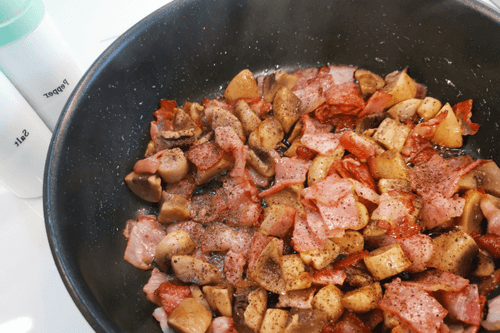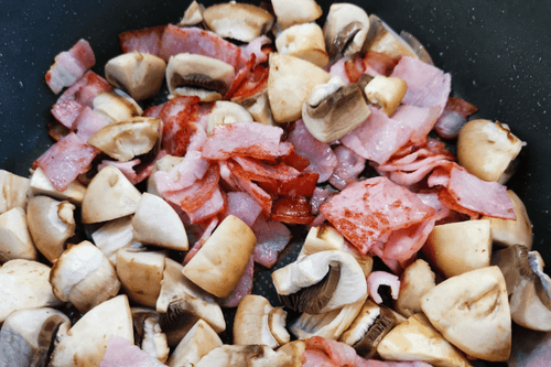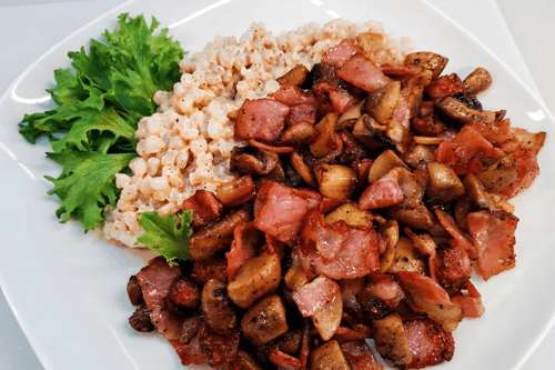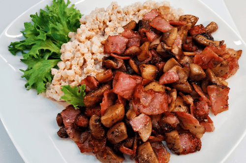 Shirataki rice with mushrooms and bacon