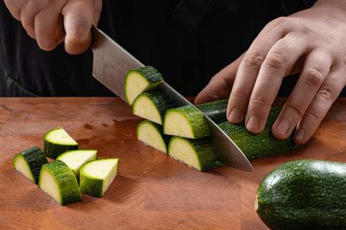 Slice the zucchini into half-moons about 1 cm thick. If the zucchini is very small, you can slice them into rings of the same thickness.