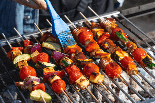 Place the skewers on a preheated grill or barbecue and cook on all sides, brushing with the remaining barbecue sauce until nicely charred.