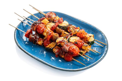 Vegetable and tofu skewers are a vibrant and aromatic dish from Pan-Asian cuisine, inspired by the tradition of cooking over an open flame. The combination of tender marinated tofu with juicy vegetables infused with grill smoke creates an amazing balance of flavors. The barbecue sauce adds a light sweetness and spiciness, while sesame provides a crunchy texture. These skewers are perfect for a vegetarian picnic or friendly outdoor gatherings. They are not only delicious but also visually appealing due to the bright colors of the vegetables. The dish easily adapts to taste preferences, allowing for experimentation with marinades and spices. It can be served on its own or complemented with rice or fresh green salads, creating a harmonious and nutritious dinner.