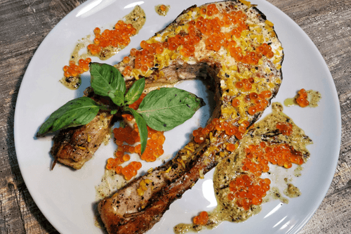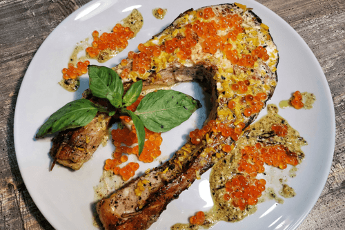 - Salmon steak: 1 piece