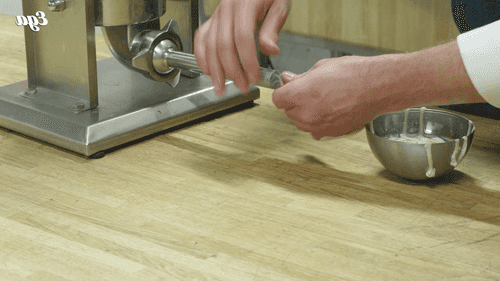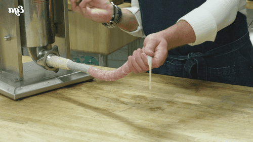 Put the casing on the meat grinder or sausage syringe, lubricating the nozzle with water.