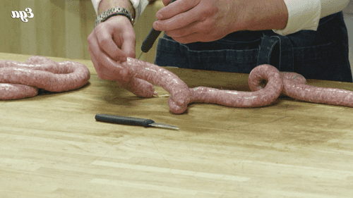 Roll the sausages to the required size, piercing air bubbles with a sausage prick.