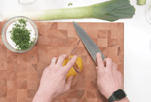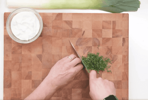 Wash the white part of the leek under cold running water and slice it into half-rings. Chop the garlic clove into small cubes.