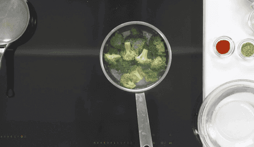Boil water in a saucepan, add salt well, toss in the broccoli, cook for 2 minutes, then transfer to cold water to stop the cooking.