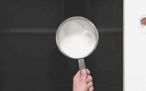 Pour milk and cream into a saucepan, lightly salt, and bring to a boil.