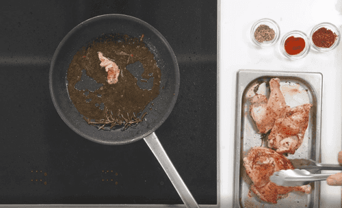 Heat vegetable oil in a pan and fry the chickens on both sides until golden brown over high heat.
