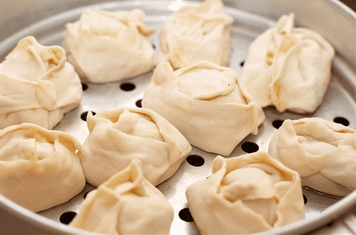 Place the prepared manti on oil-greased racks, put them over a pot of boiling water or broth, and steam for 25-30 minutes. Serve the cooked manti with spicy sauce, sour cream, or melted butter.