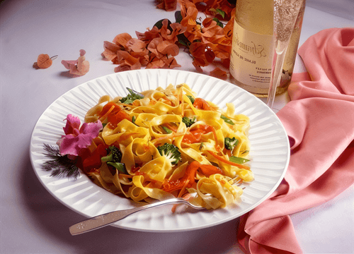 Vermicelli with chili, broccoli, and mango is a delightful blend of Italian cuisine with exotic notes. Thin, delicate strands of egg vermicelli harmoniously intertwine with crunchy broccoli florets, creating a balance of textures. Bright pieces of green mango add a light sweetness while spicy chili brings a zesty heat. Fresh cilantro and sesame oil enhance the dish with a rich aroma. It’s perfect for a light lunch or dinner, delighting with its freshness and contrasting flavors. This recipe is a find for lovers of bold culinary experiments as it combines tradition and innovation, making familiar ingredients unusually expressive.