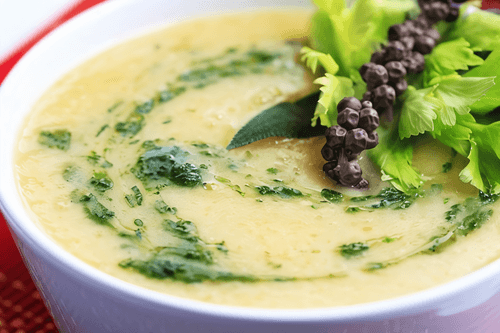Place the parsnip in a blender and blend into a smooth puree, mix with cream. Add nutmeg, salt, and pepper to taste.