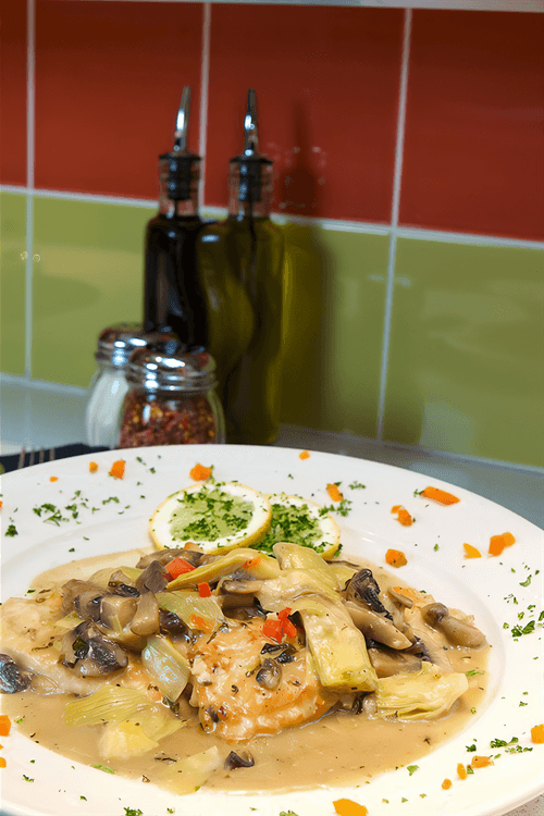 Chicken in creamy mushroom sauce is an exquisite dish of European cuisine that captivates with its delicate flavor and velvety texture. It resembles traditional French recipes that combine creamy sauces and aromatic mushrooms. The chicken breast, fried to a golden crust, gains softness and richness from the cream and milk. Mushrooms add a light earthy note, while fresh herbs and lemon juice enhance the flavor palette. This dish pairs perfectly with rice, pasta, or crispy baguette, allowing you to fully enjoy its rich taste. A wonderful choice for a cozy dinner or festive gathering.