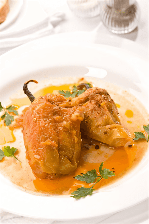 Stuffed peppers with meat and cheese are a true gastronomic delight from Russian cuisine. Sweet yellow pepper, tender meat, aromatic spices, and golden parmesan create a harmonious balance of flavors and textures. This dish is not only hearty but also elegant, perfectly suited for family dinners and festive gatherings. Historically, stuffed vegetables were popular in Eastern European culinary traditions, symbolizing home comfort and care. Baking under oiled paper preserves the juiciness of the filling while the final touch of parmesan adds sophistication. Peppers are served hot, garnished with fresh herbs to complement the richness of the flavor bouquet. Each bite reveals the depth of juicy meat, tenderness of vegetables, and spiciness of cheese, making this dish truly unforgettable.