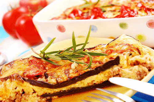 Moussaka with hard cheese