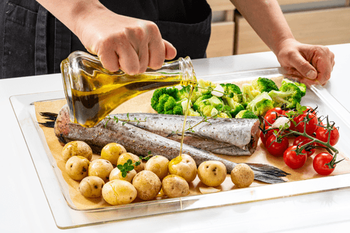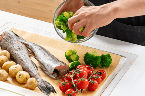Минтай в духовке — это гармония простых ингредиентов и насыщенного вкуса. Этот рецепт берет свое начало из европейской кухни, где легкость и полезность блюда сочетаются с его питательностью. Нежное филе минтая, пропитанное ароматом тимьяна и чеснока, приобретает аппетитную золотистую корочку, а овощи — картофель, брокколи и сочные помидоры черри — добавляют свежесть и текстурное разнообразие. Легкая кислинка лимона подчеркивает вкус рыбы, а оливковое масло придает нежность каждому кусочку. Блюдо идеально подходит для семейного ужина или легкого обеда, сохраняя баланс между вкусом и пользой. Простота приготовления делает его доступным даже для начинающих кулинаров, а результат радует насыщенным, сбалансированным вкусом.