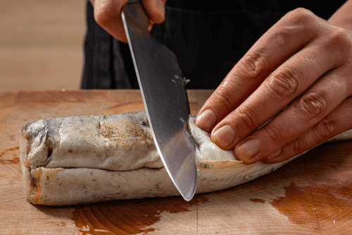 Grilled navaga is a dish that embodies the simplicity and sophistication of European cuisine. The tender navaga meat infused with the aromas of lemon, garlic, and rosemary gains a rich flavor and appetizing golden crust when roasted over an open flame. This cooking method not only preserves the fish's natural juiciness but also imparts subtle smoky notes. A green sauce made from parsley, garlic, spicy chili, and juicy kiwi adds freshness and zest, making the dish particularly memorable. Such fish is perfect for friendly gatherings outdoors, picnics, or summer dinners under the stars when one wants to enjoy the harmony of natural flavors and aromas.