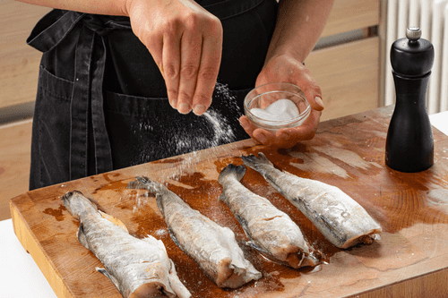 Rub the fish inside and out with oil, salt, and ground pepper.