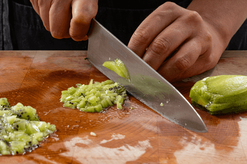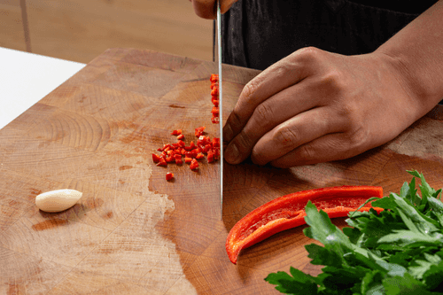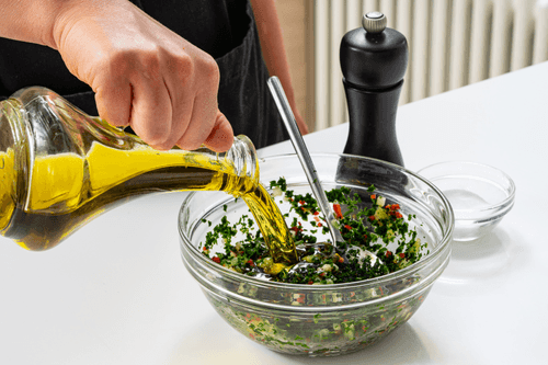 Mix parsley, garlic, chili, and kiwi, add olive oil and salt to taste.