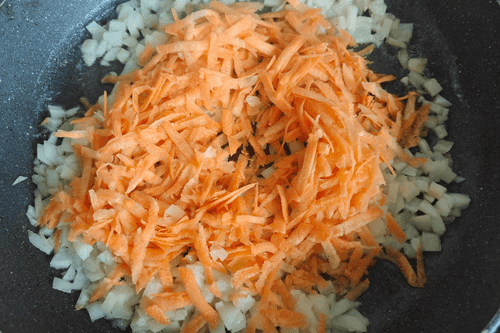 In a well-heated pan with sunflower oil, fry the vegetables until half-cooked.