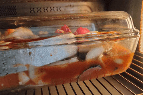 Cover with a lid and place in the oven at 180 degrees for 30-40 minutes.