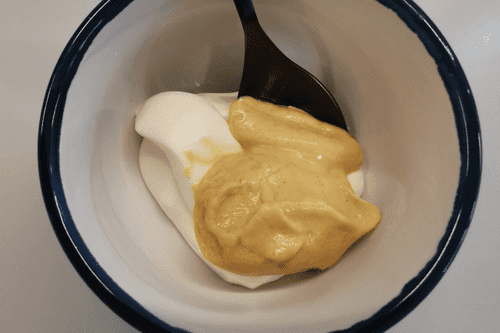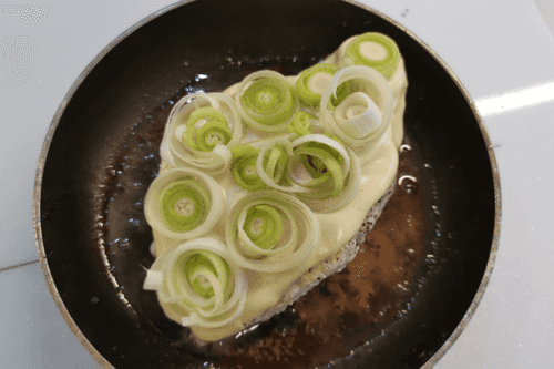 Spread with mustard-mayonnaise sauce, then top with leeks.