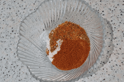In a separate container, place 1 teaspoon of pepper mix, 1 teaspoon of smoked paprika, 1 teaspoon of salt, and 1 teaspoon of ground dried garlic.