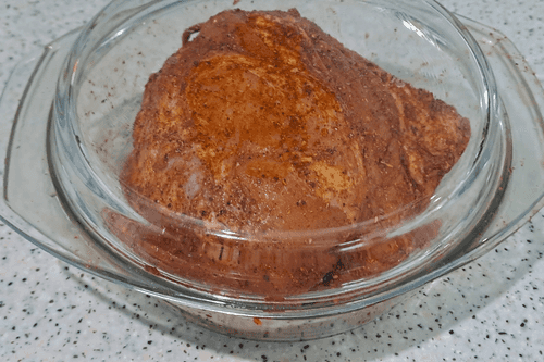 Cool the finished dish under a closed lid to keep it juicy. Then remove from the mold and serve.