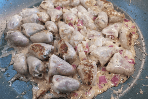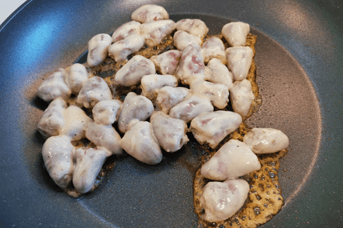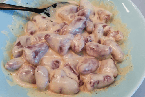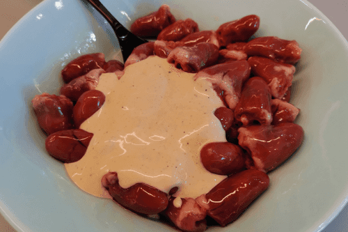 Chicken hearts in a skillet are a tender and aromatic dish of Russian cuisine, featuring a rich flavor with a slight spiciness from Dijon mustard and spices. Hearts soaked in creamy sauce become surprisingly soft and juicy. Historically, offal has always been valued in Russian cuisine for its nutrition and availability, and this recipe is a vivid example of their skillful use. Frying over high heat gives the hearts an appetizing golden crust, while subsequent stewing in the sauce makes them incredibly tender. The dish can be served with mashed potatoes, buckwheat, or fresh vegetables, creating a harmonious combination of flavors. Due to its simplicity in preparation and rich aroma, this treat is perfect for family dinners or cozy gatherings.