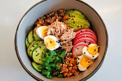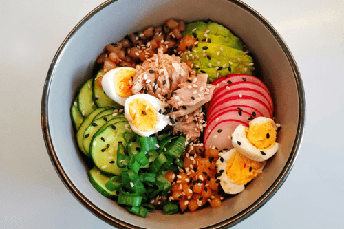 Keto poke is a refined dish inspired by Hawaiian cuisine but adapted for the keto diet. Its roots trace back to traditional poke, popular among fishermen who mixed fresh tuna with vegetables and spices. Here, instead of classic rice, light shirataki is used, giving the dish airiness and making it an ideal choice for low-carb eating. The flavor of keto poke is a harmony of creamy avocado, fresh cucumber and radish, the spiciness of soy sauce and the heat of ground chili. Light quail eggs add tenderness while sesame gives a delicate nutty note. This dish not only delights the palate but also provides benefits by nourishing the body with healthy fats and proteins. Keto poke is perfect for both a light lunch and an elegant dinner, allowing you to enjoy Hawaiian flavors without the carb load.