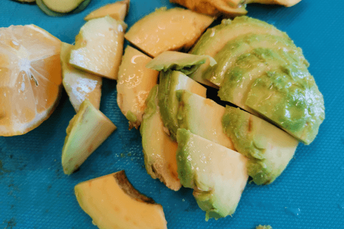Sprinkle the avocado with lemon juice (1 tbsp).