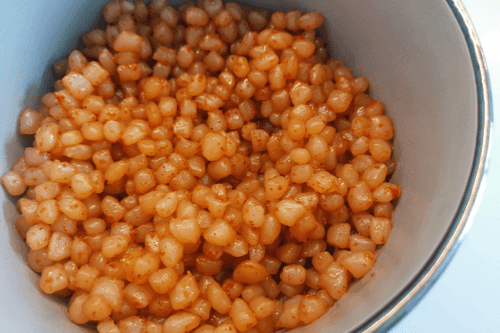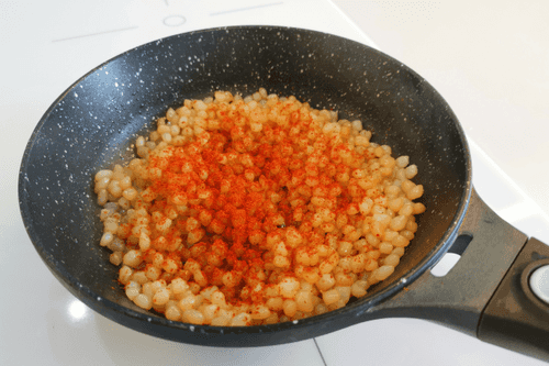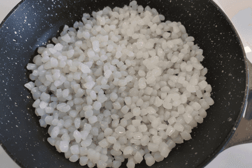 Heat a tablespoon of olive oil in a pan. Add the rice.