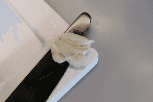 Crush a clove of garlic with a knife.