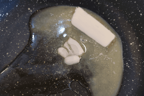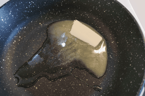 Heat butter and olive oil in a pan.