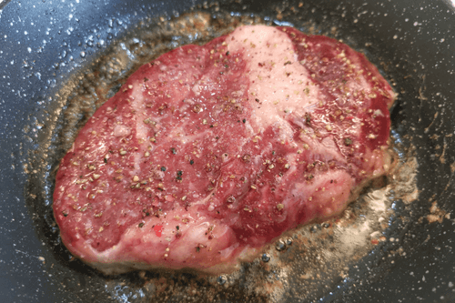 Place the steak. Fry on medium heat for 3-4 minutes.