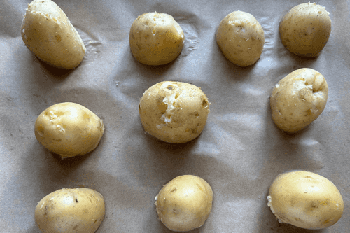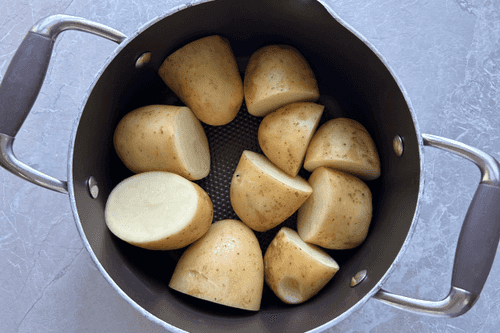 Cut the potato in half.