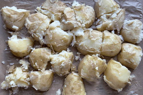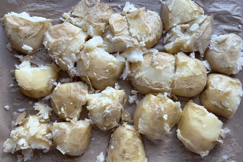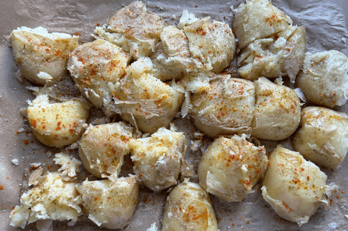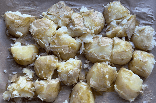 Давленый картофель — это простое, но невероятно вкусное блюдо русской кухни. Его корни уходят в деревенские традиции, когда хозяйки находили способы приготовить картофель так, чтобы он был сытным и ароматным. Нежная мякоть картофеля, обжаренная в духовке с оливковым маслом и специями, приобретает хрустящую золотистую корочку. Этот рецепт сочетает в себе простоту и богатый вкус: душистый черный перец, паприка и хмели-сунели придают пикантность, а оливковое масло делает текстуру бархатистой. Давленый картофель идеально подходит как самостоятельное блюдо или гарнир к мясу и рыбе. Его подают с соусами, зеленью или сметаной, наслаждаясь сочетанием хрустящей корочки и мягкости внутри. Блюдо прекрасно подходит для уютных семейных ужинов и дружеских встреч.