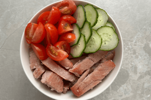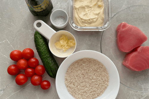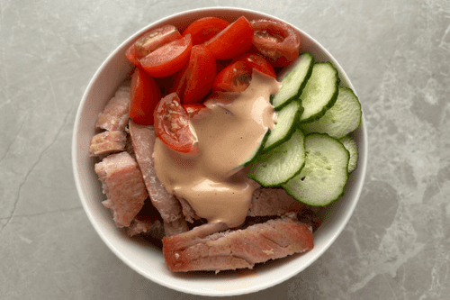 Tuna bowl is a harmonious blend of freshness, nutrition, and Asian flavor notes. It originated in Pan-Asian cuisine, focusing on fresh ingredients and flavor balance. Tender tuna, lightly seared in butter, retains its juiciness while crunchy cucumbers and juicy tomatoes add freshness to the dish. The mayonnaise and soy sauce dressing adds depth and umami accentuating the softness of the rice. This bowl is perfect for a light dinner or lunch; it satisfies without heaviness and its aesthetic presentation makes it a great choice for those who appreciate not only taste but also visual enjoyment of food.