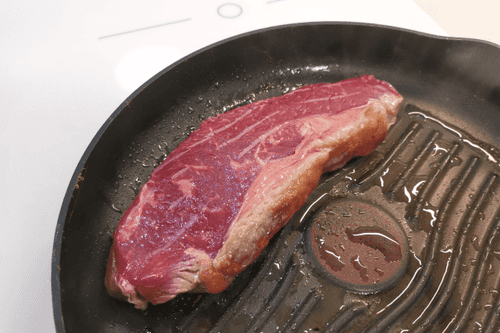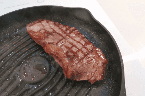 Place the steak on the skillet and sear on high heat for 2-3 minutes.