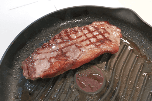 Flip the steak in the pan to create a grill pattern. Sear for another 2-4 minutes.