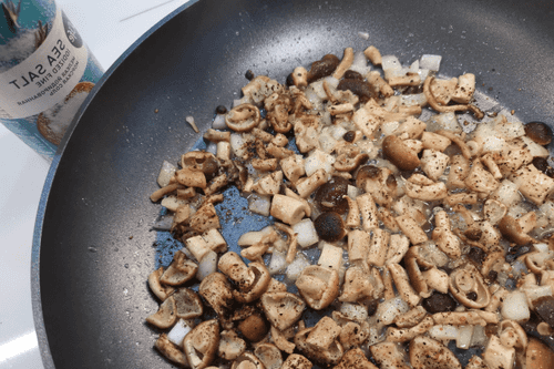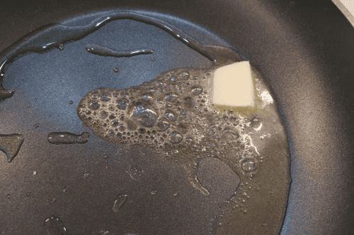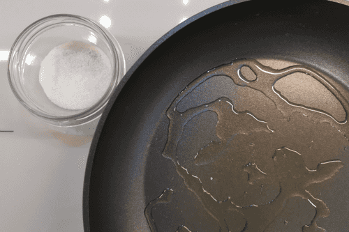 Heat olive oil in a pan. Add a pinch of coarse salt.